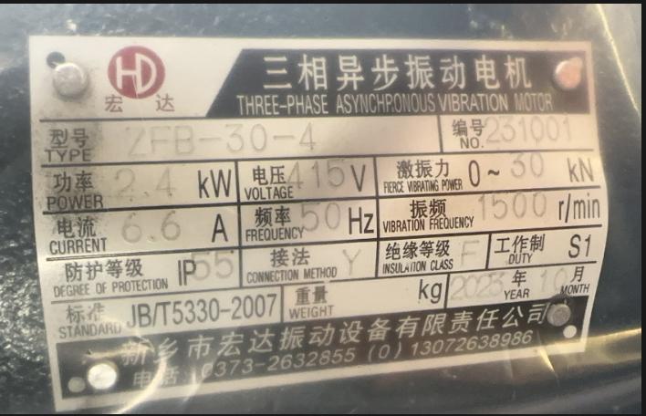 您好晉經(jīng)理:您在貴公司訂購的ZFB-30-4振動電機(倉壁振動器)電壓415V 功率2.4KW數(shù)量8臺已通過安能物流發(fā)往目的地.預計3天后到達,請保持手機暢通,注意查收。(使用前請詳細查看振動電機使用維護說明書)。